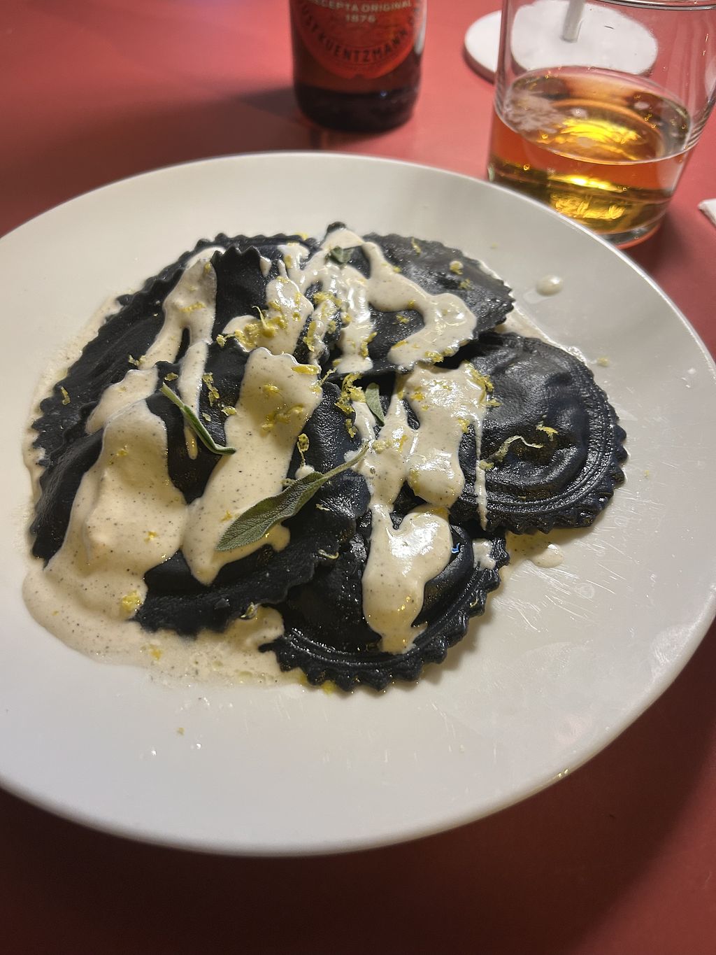 Problem is the way too small portion size of the ravioli. It’s also a bit pricey to eat for dinner (there’s a discount for lunch)