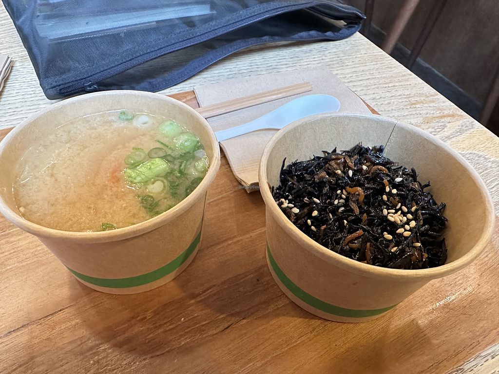 Serves meat, vegan options available. Japanese health food restaurant and sustainable home goods store. Offers a vegan bento box, sides like hijiki seaweed, brussels sprouts & shishito peppers, plus a miso soup all clearly marked as vegan on the menu. Open Mon-Sun 8:00am-5:00pm.