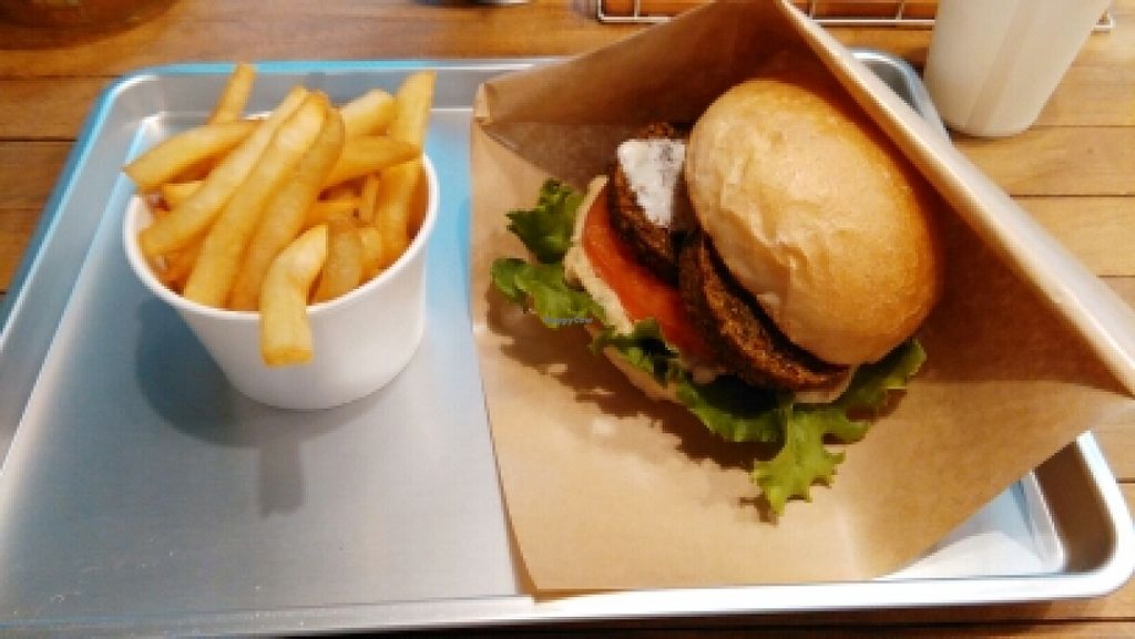 I had the vegan cheeseburger and fries and a friend the falafel burger. Tasted great, definitely a must if you're in Shinjuku. Keep in mind there are 2 locations to try in Shinjuku.