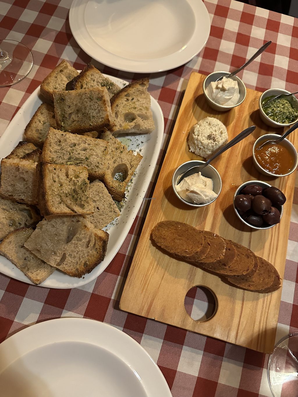 We reserved a table outside and it was quaint. Food was delicious and portions very large. Between us, we ordered the sourdough bread, salad (which was very fresh and delicious), pizza and lasagna. We had tiramisu and gelato for dessert. No complaints! Service was excellent.