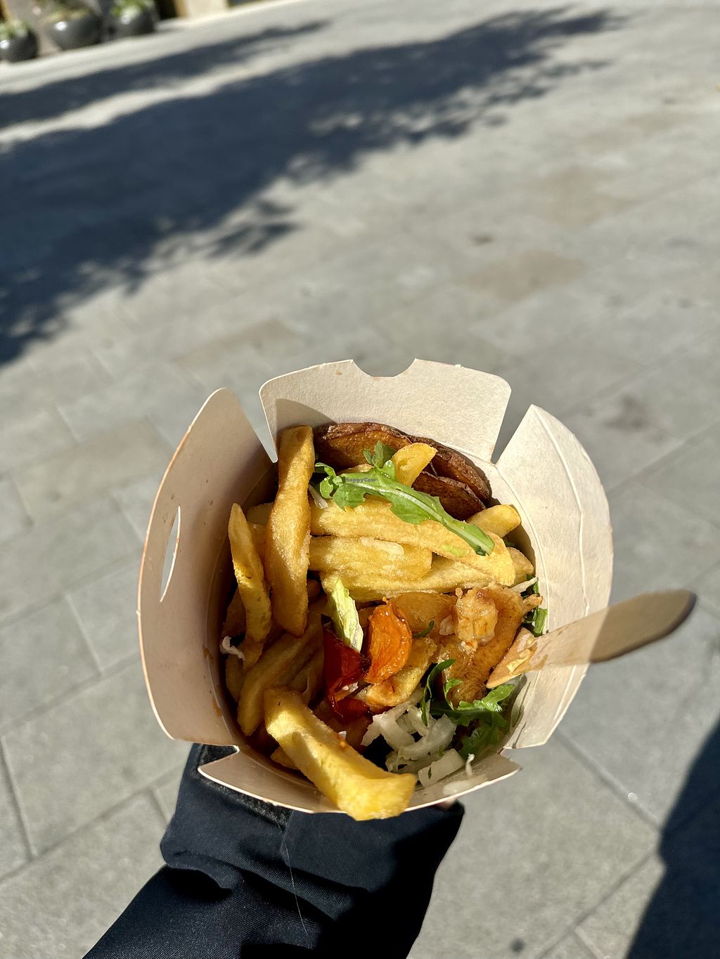 Cons: Keine Sitzmöglichkeiten in der Nähe, Relativ fettig