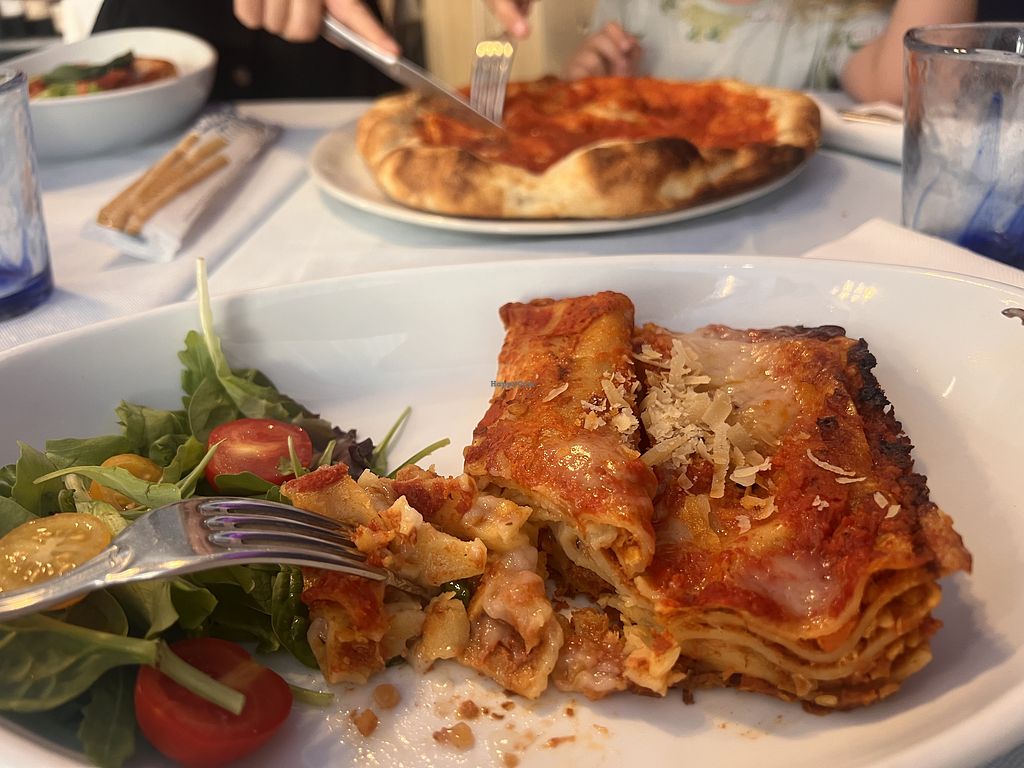 Pizza crust was beautifully soft and the sauce was great. No vegan cheese but didn’t need it. Organic vegan lasagne was really great and quite a surprise to find! Tasted like real ingredients - lentil tomato sauce and chickpea cheese - didn’t taste artificial