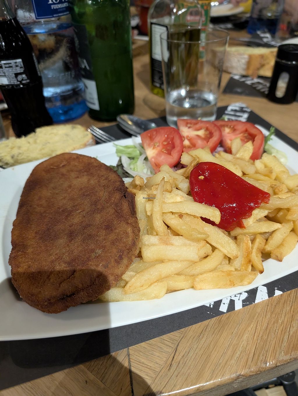 Read moreTo be honest, one portion would be enough for two people. But we didn't know that. It's simply unrealistic for one person to eat one portion, it's so huge! The idea with vegan cachopos is really interesting. However, the cachopos were very, very salty there. Even delicious cider didn't help. This was also the reason why we couldn't finish everything.