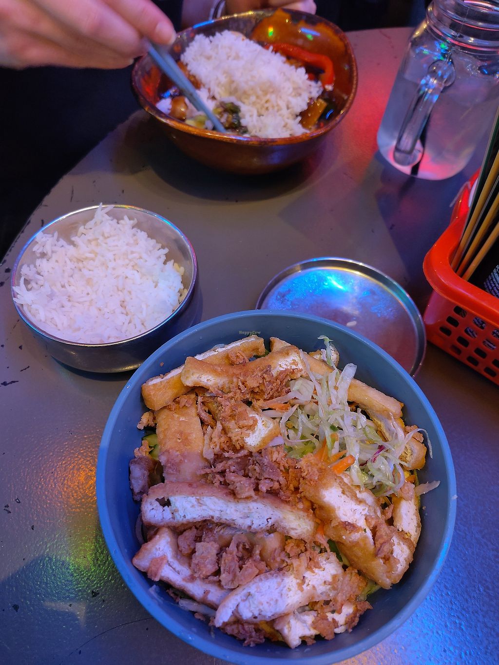 The Pho Chay came in a tiny bowl with very little broth while the dish with rice noodles, vegan meat, veggies, and soy sauce tasted rather bland. Food came extremely quickly after placing order.