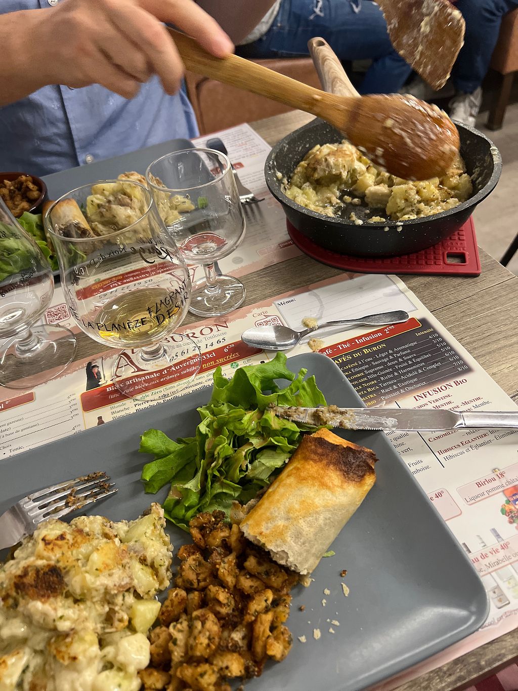 Au Buron is an Auvergnat restaurant offering authentic vegan alternatives! The chef has developed his own vegan cheese for traditional Auvergne dishes. Everything is absolutely delicious, from starters to desserts. The owner is very friendly, and the atmosphere is typical. It's really the perfect place to eat with anyone, and you'll have a vegan option that holds up pretty damn well. I really recommend it!