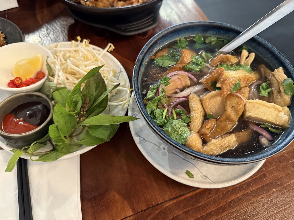 Read moreThe food is vietnamese with fairly heavy use of mock meats although there are dishes without as well. The dishes are flavorsome and quite a few of my meat eating friends are happy to come here!