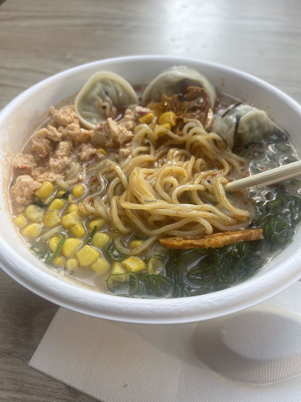 I had the vegan ramen. It was ok, nice flavour. The dumplings were cold though.