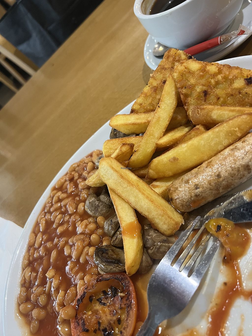 Serves meat, vegan options available. Cafe and restaurant with vegan beans on toast, full breakfast, pasta pomodoro, house-made hummus, foul, tofu burger and more. Open Mon-Sat 08:00-18:00, Sun 09:00-18:00.