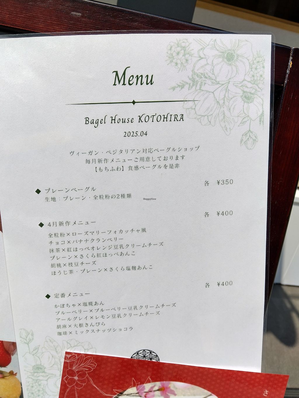 Bagel shop with explicitly vegan items, including bagels filled with vegan cream cheese. Has seasonal menu items. Vegan options are listed on a separate menu in Japanese (English speakers can use Google translate) or ask. Open Mon-Tue 10:00am-6:00pm, Thu-Sun 10:00am-6:00pm. Closed Wed.