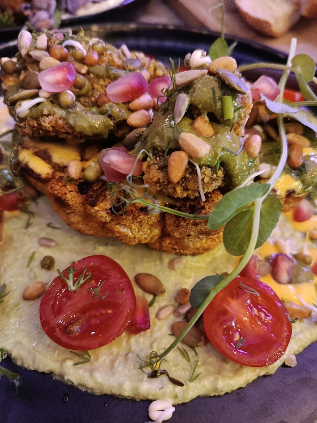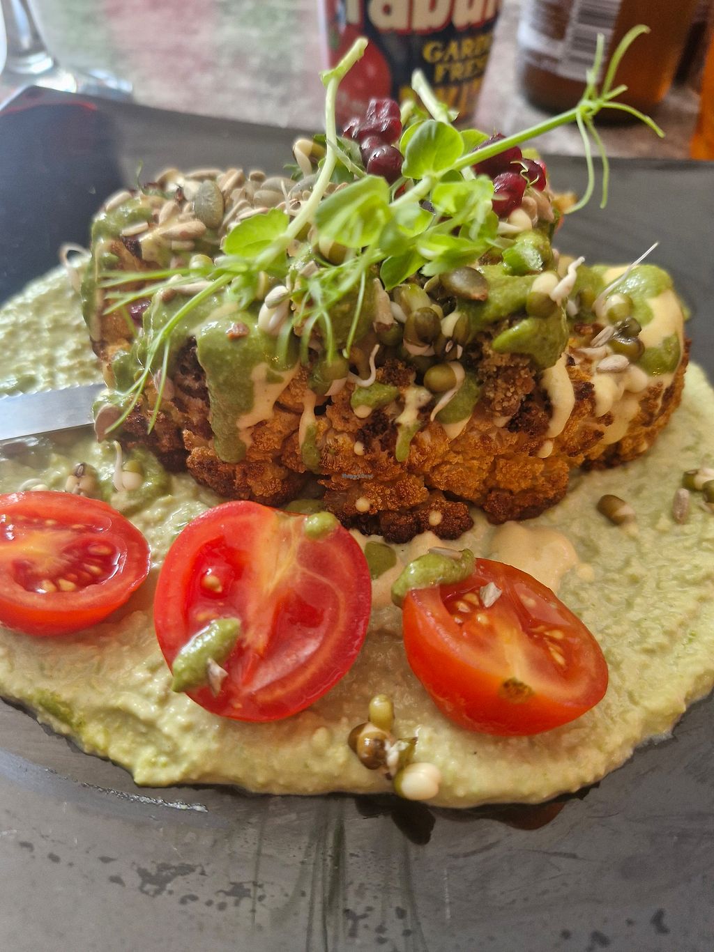 Lovely food, huge portions! None of us could finish the mains. I took 3 non-vegans and everyone loved their meal. We had the Buddha bowl - great flavours, especially the duck - Schnitzel, cauli steak and cheeseburger. It was all delicious. They have happy hour, 4 - 7pm with buy one get on free cocktail, we tried the Cucumber spritz which was nice and refreshing. After 7pm ladies get a free glass of prosecco when you order a main.cStaff were very friendly, and with a party of 4 we were given some complimentary Borgilla and bread (traditional maltese bean dip) Worth the visit!