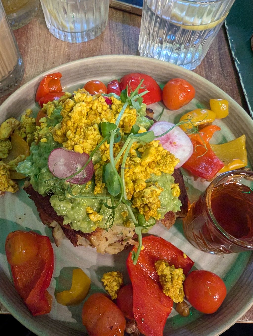 Nice brunch / lunch place. They do things like waffles and french toast. Not for vegans, though. A menu online says they do a vegan french toast but it isnt on the menu in the restaurant and the waitress knew nothing about that. But they do have a few vegan options. I had the hash stack which is three good sized potato hash things with various toppings. On tbe menu it is vegetarian but they offer a vegan version by swapping the egg, feta and honey for tofu and maple syrup. It was really nice. They also have vegan cauliflower tacos and can do their vegetarian breakfast vegan again swapping the egg for tofu. Oat milk latte was nice. Staff friendly. We went on a thursday morning and had booked to be safe. Just as well as they were turning people away. Cant give 5 stars and it’s not the best ever restaurant therefore 3 stars which is better than it sounds. Would go back for sure.