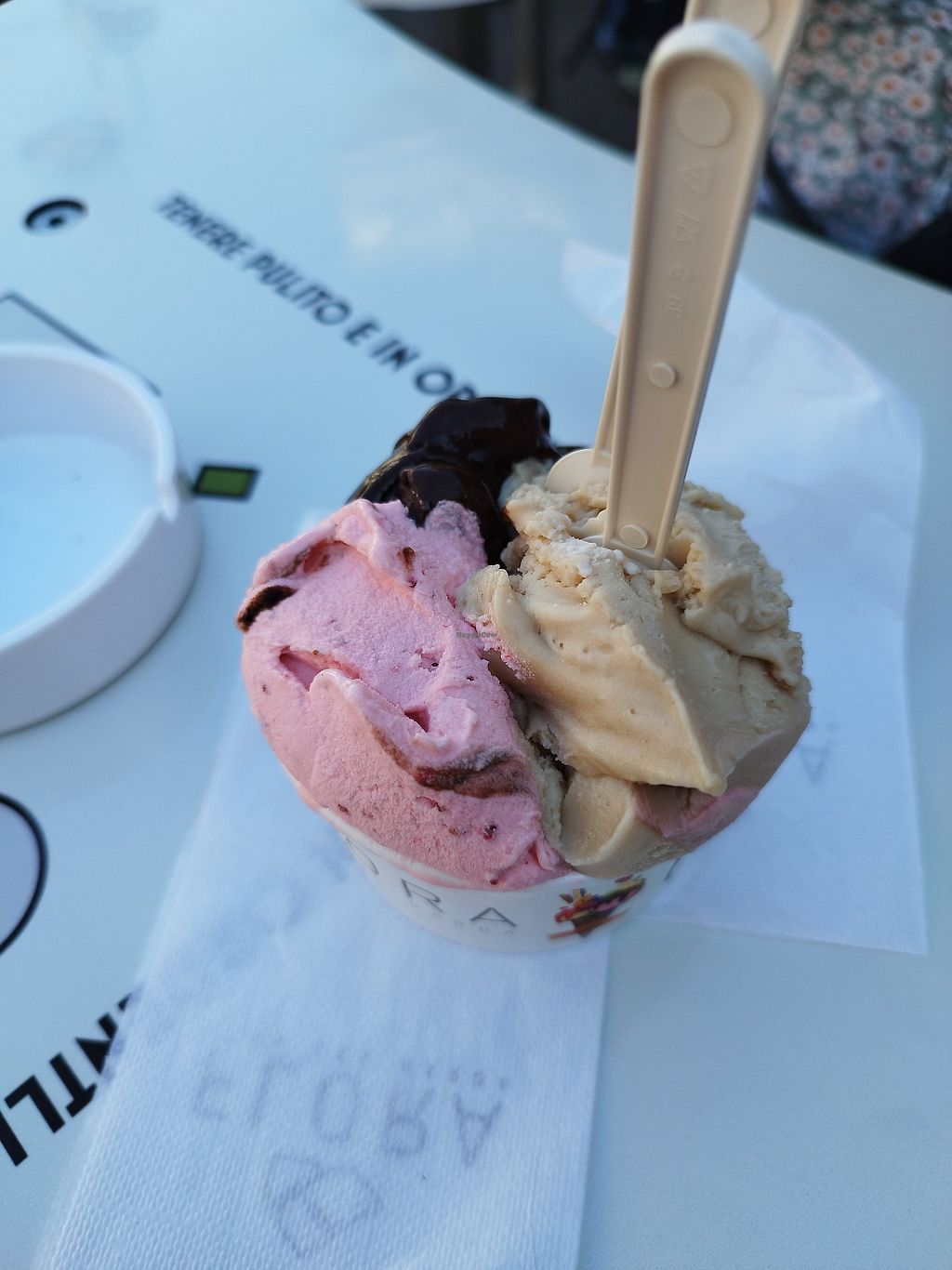 I had a soy haselnut and Orange chocolate ice cream. The vegan waffle was free of charge, the service was friendly, she could speak english and could tell us which ice creams are vegan. Most importantly: the ice cream was delicious 😊