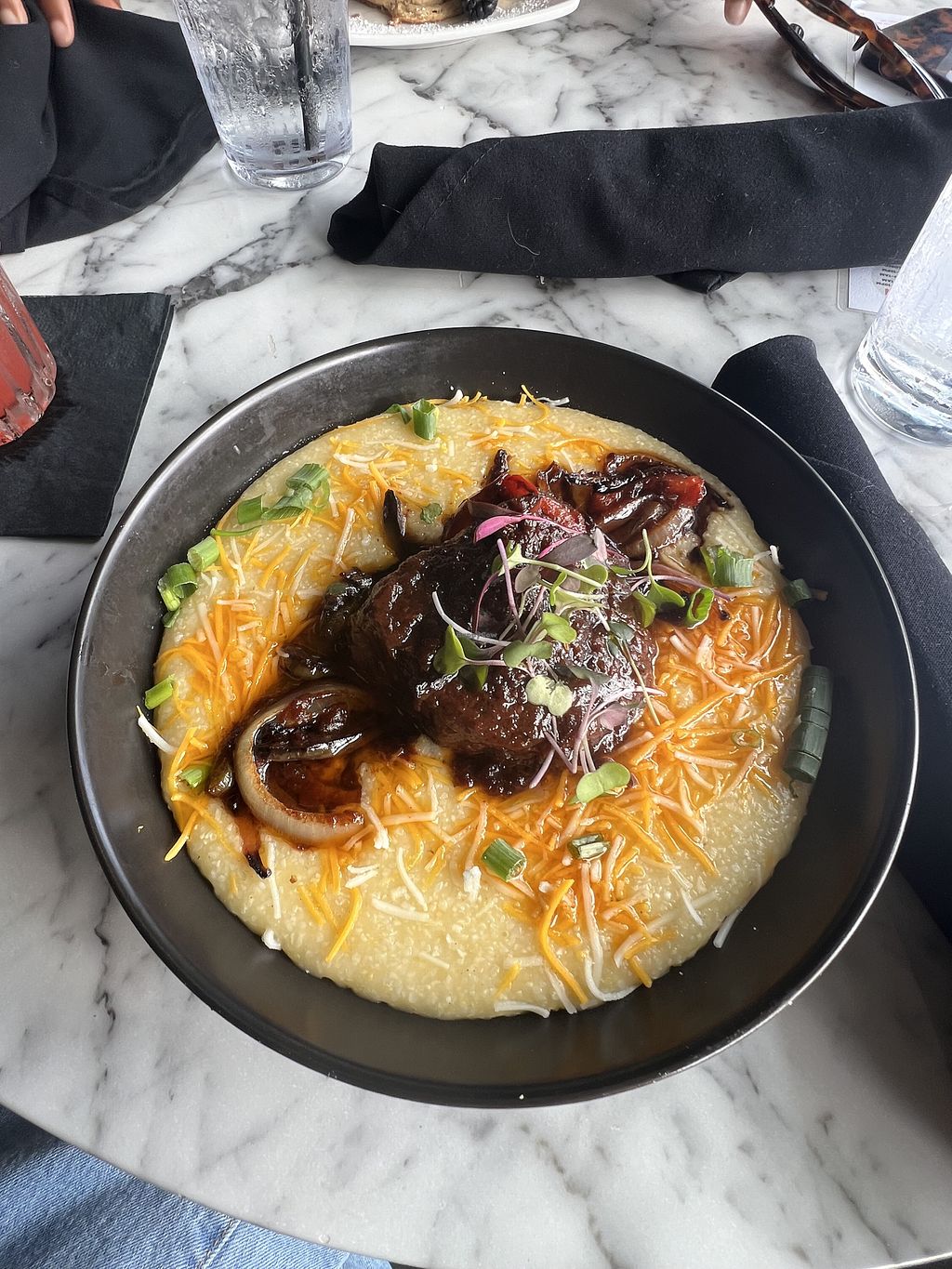 Went for brunch based on wanting to relive the amazing shrimp and grits that I had at the Atlanta location yearsss ago. During the 2 ish hours we were there there were not many people, service was okay. My brunch oxtail and grits were good! I was with a picky non vegan who ordered the sweet potato pancakes and they said they were not good.