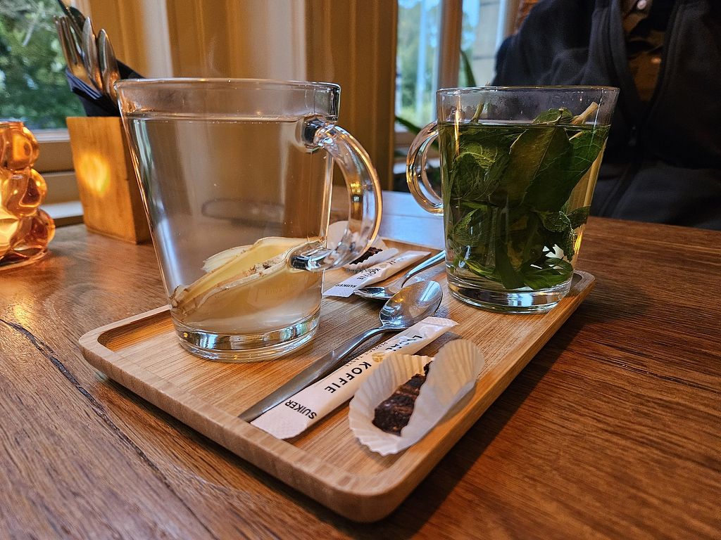 We were seated by a window. While it was a bit chilly inside, the incredible food absolutely made up for it. We began with a cup of herbal tea, a latte and three appetizers to share: the Cauliflower Wings, Köfte, and Bao Buns. All were delicious, but the Cauliflower Wings stole the show for us, followed by the Bao Buns and then the Köfte. By the way, the herbal tea was amazing!