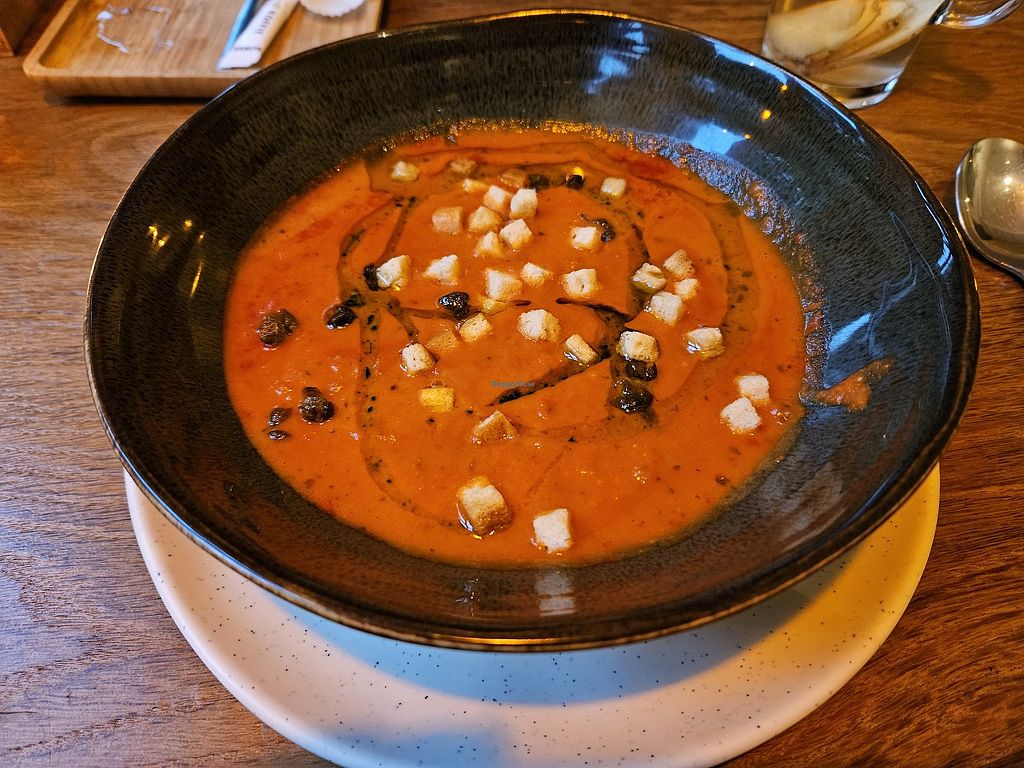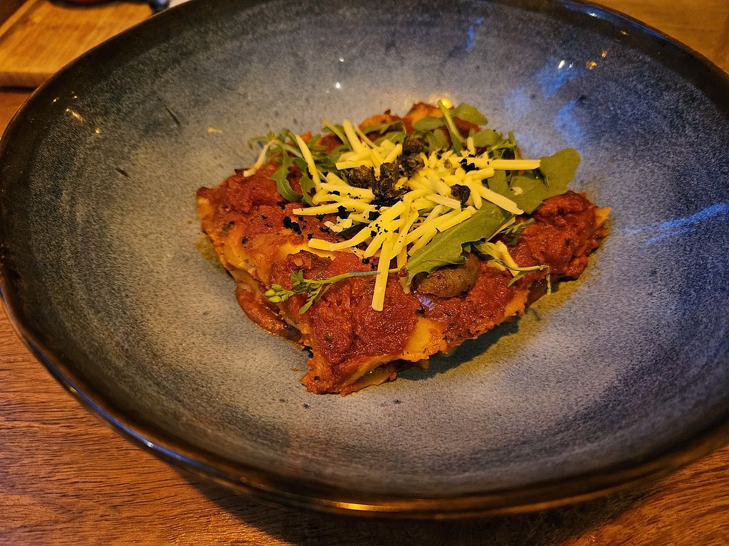 So great when everything on the menu is vegan and you can just order whatever you feel like. The staff was exceptionally friendly and the atmosphere really cozy for a nice dinner. I enjoyed the lasagna a lot, but the starters blew me away even more. The tomato soup was packed with flavour, and the cauliflower wings were perfectly crispy with a chili mayo that was tasty and nicely spicy. Definitely recommend! I also really appreciate that, beyond the standard soft drinks, they offer a nice selection of non-alcoholic beverages.
