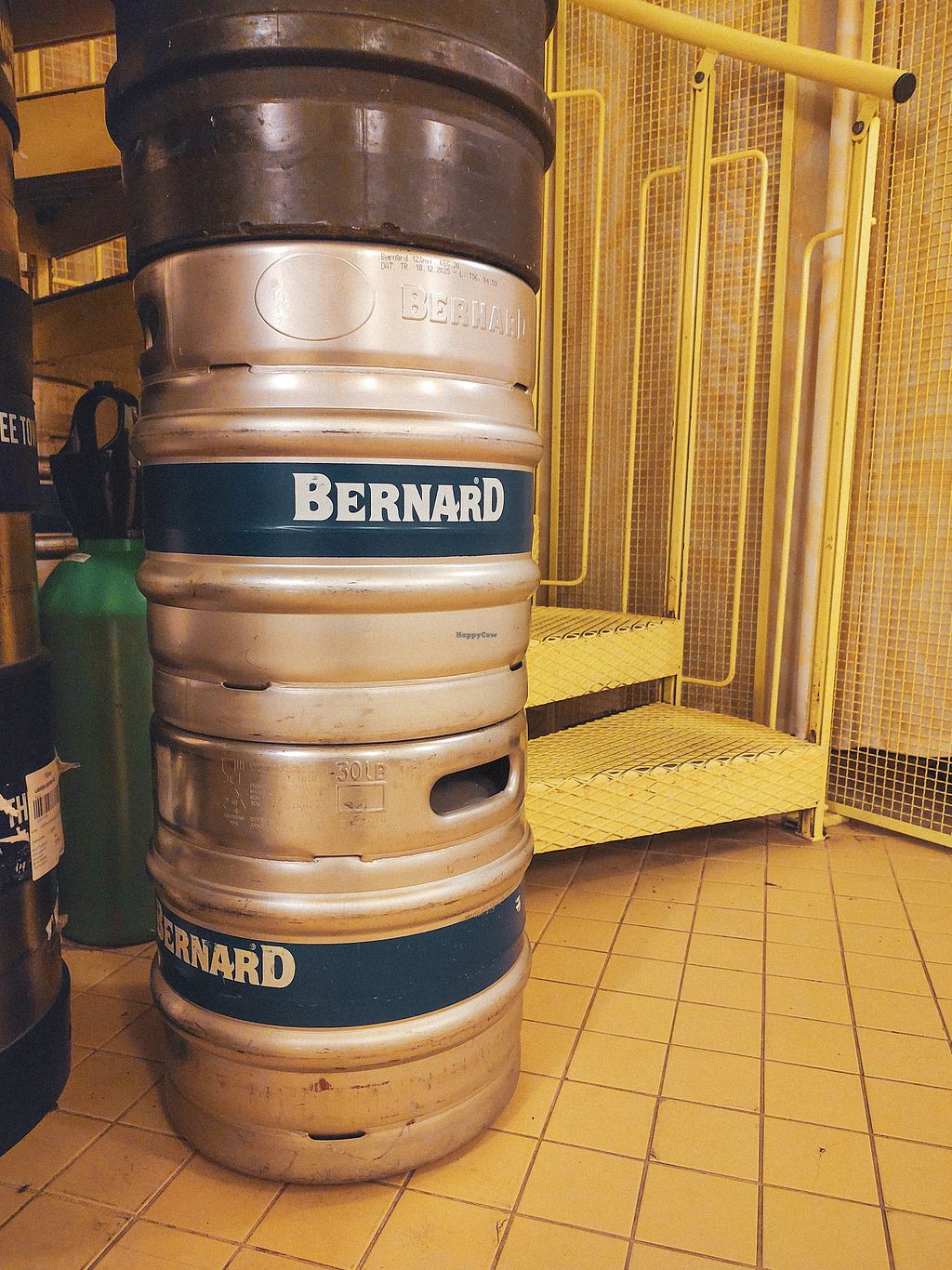 Salty toffee almond cake served with cherry sorbet ice cream.