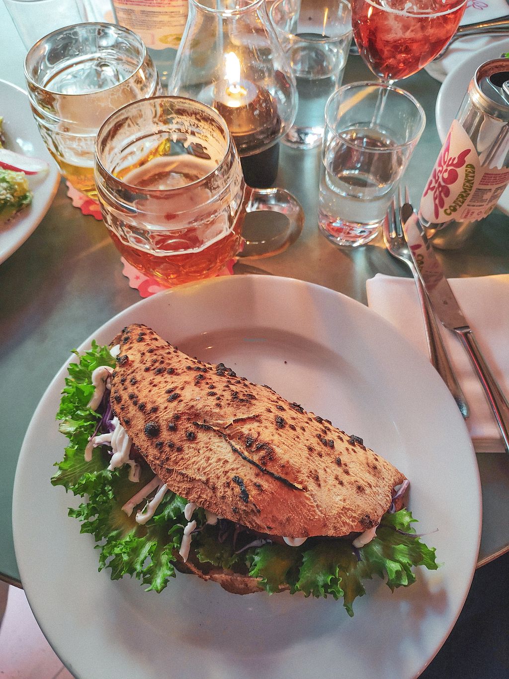 Mung bean & cauliflower patties served with chantarelles, artichoke pu…