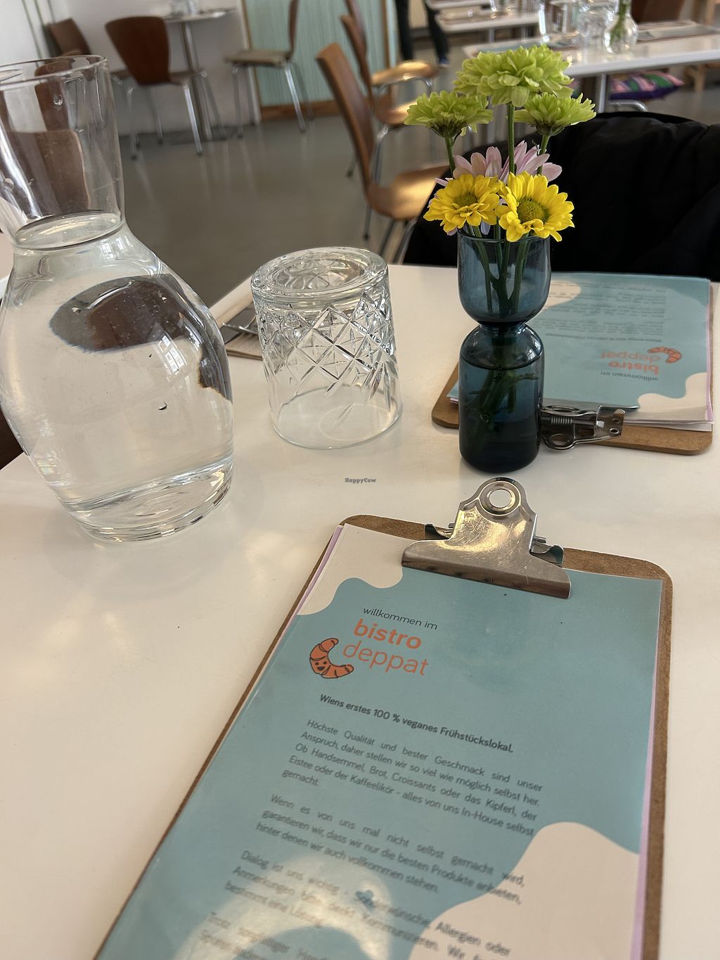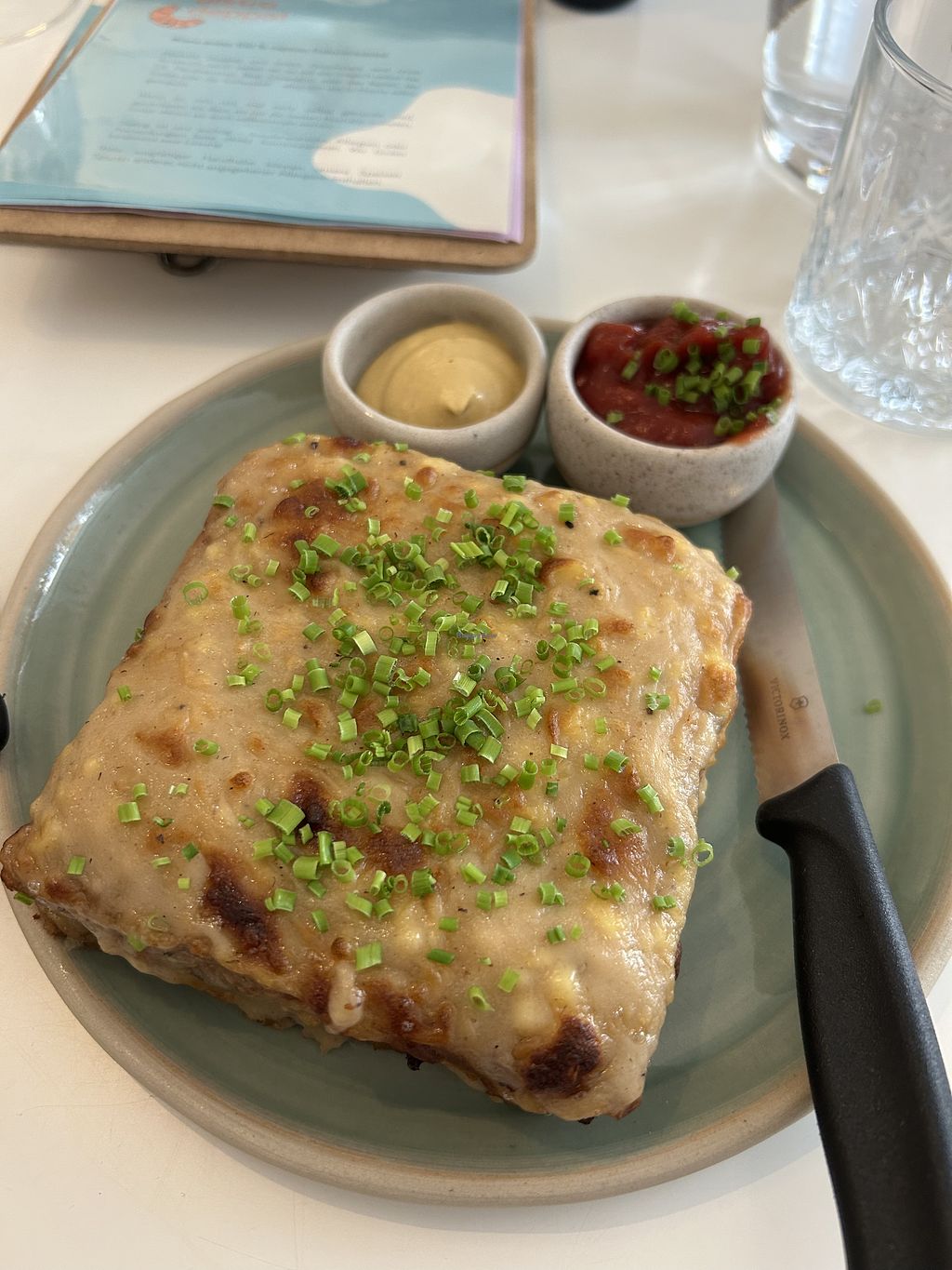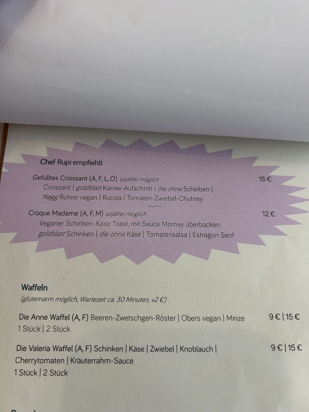 it's a vegan place, but with tables very close to one another, so not comfy at all. i guess the prices are normal for nowadays but i would expect to get more for it. e.g. croque madame was good, but there was no "english breakfast" or some option with a lot of vegan protein (even though i saw it on the pictures and was hoping to get that). croque madame had a tiny layer of tofu and other salty options didnt have any protein, like the scrambled egg is the proteinless egg etc. also tiny tea portion and the vegan whipped cream for waffles was completely liquid.