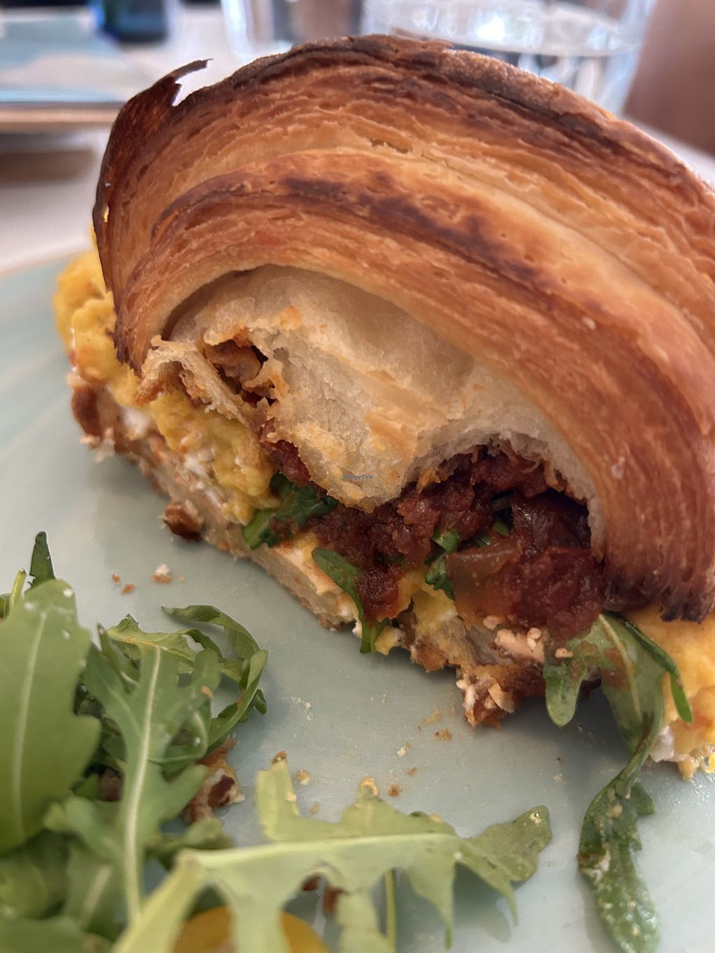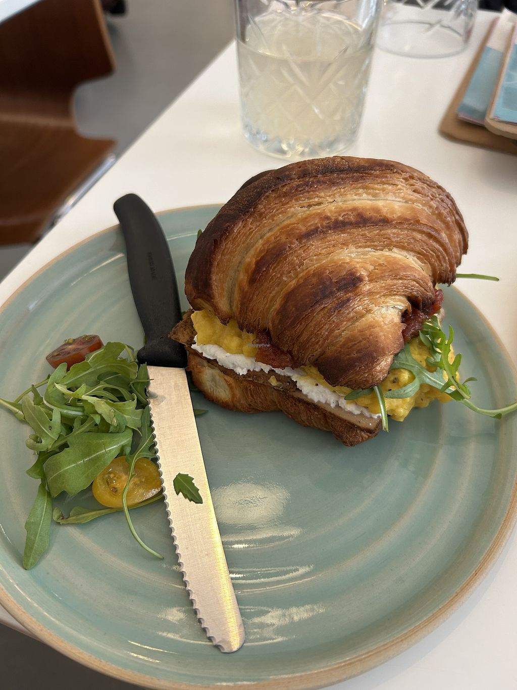 Now the food... I got both signature dishes. In the croissant I swaped the cheese slice with almond ricotta.