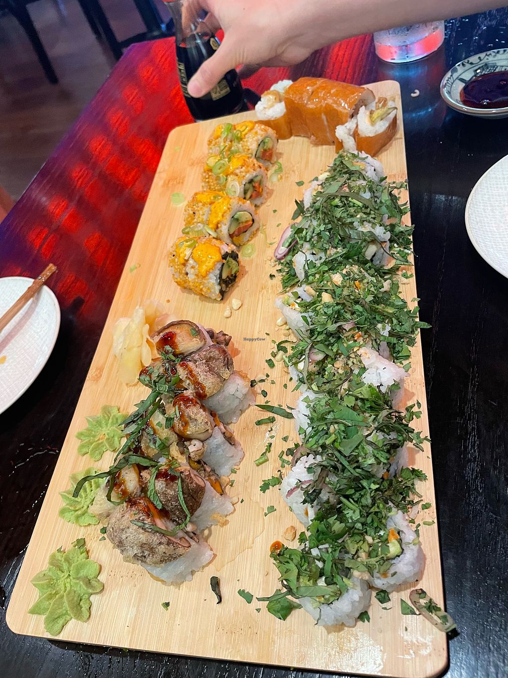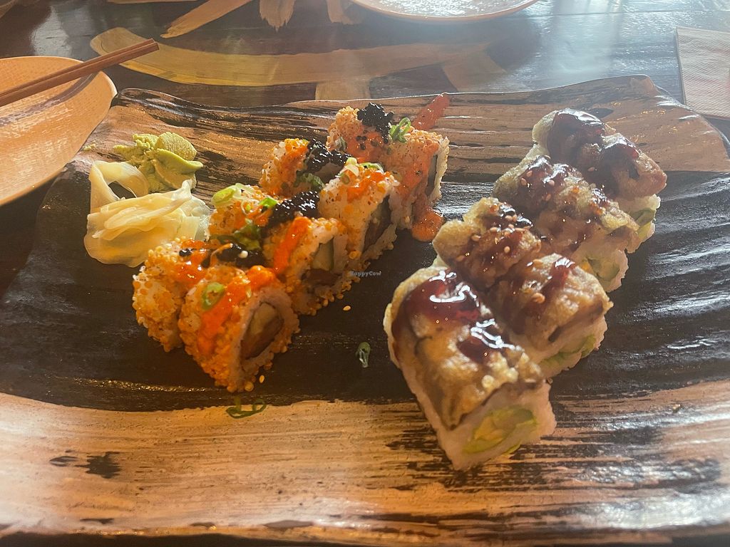 Read moreWe sat outside on the back patio and split four of the vegan sushi rolls. Cowgirl, Thai hippie, Up in smoke and Black dragon. So good I forgot to take a picture! They looked as delicious as they tasted.