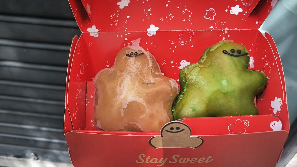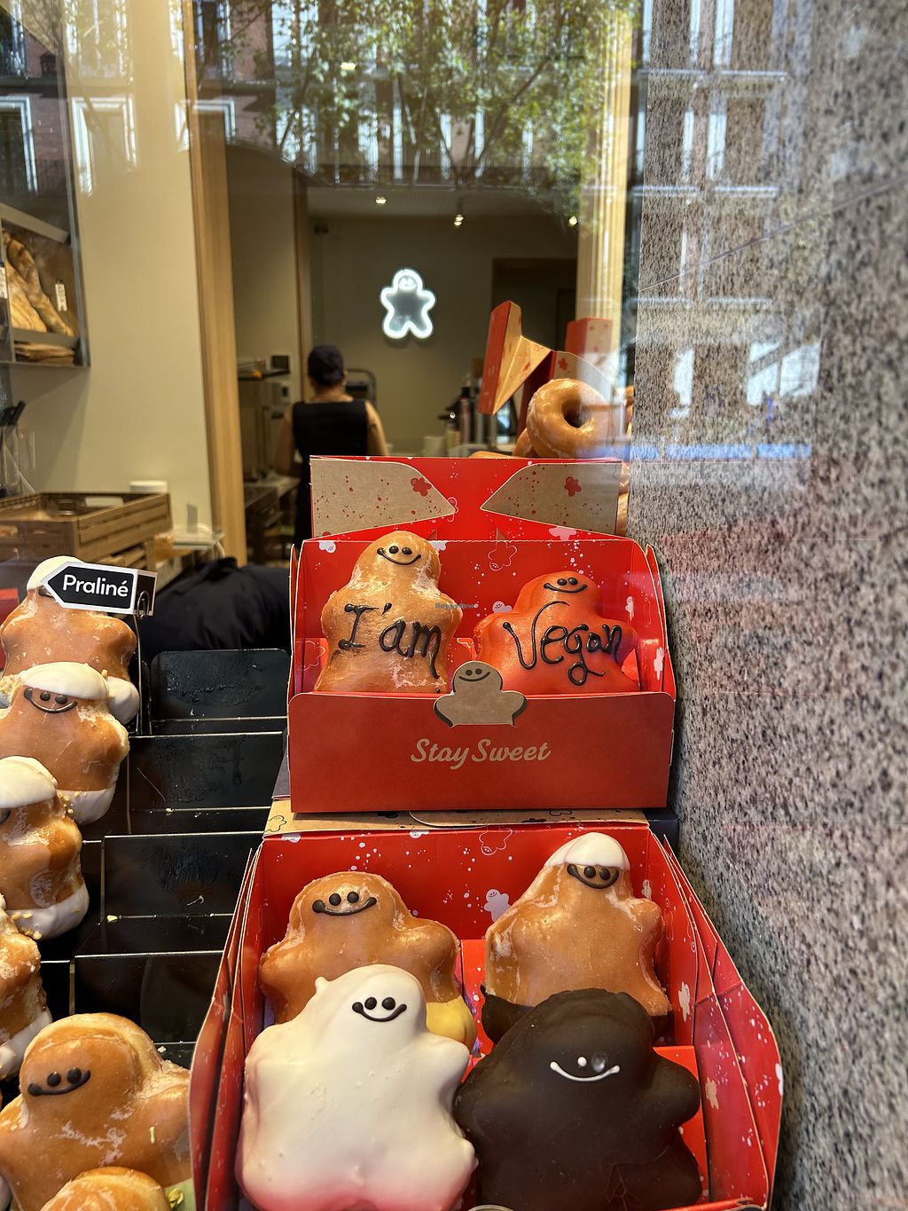 We visited around 9p and of the 4 vegan options they had raised, glazed and 1 glazed filled Speculoos left. The Speculoos was yummy! How clever to fill them with the comfort of the spice flavor from Speculoos. I would definitely pick that one again. The glazed was good too. The dough was sweet, light, airy, and a slight chewy texture.