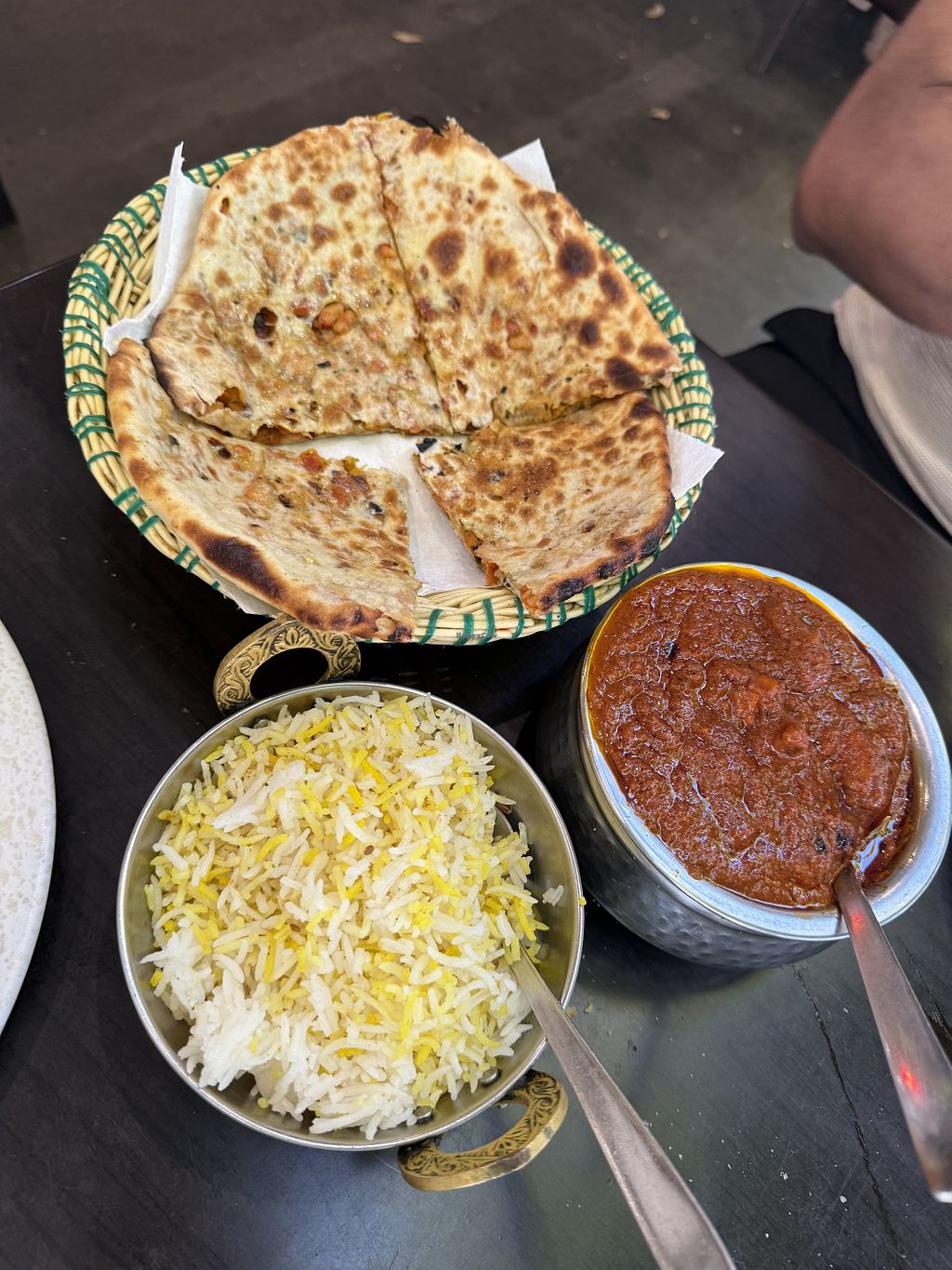I’m not big on Indian food, mainly because it’s always too spicy. Even when asking for mild, it was still too spicy... They very kindly brought some coconut cream, which helped. The rice is very good, papadum is always nice, the onion bhujia is tasty. Flavours are authentic. Very cheap. The portions are generous. Service is quick. Ask for the vegan menu, lots of dishes!! The bright lights inside aren’t inviting though.