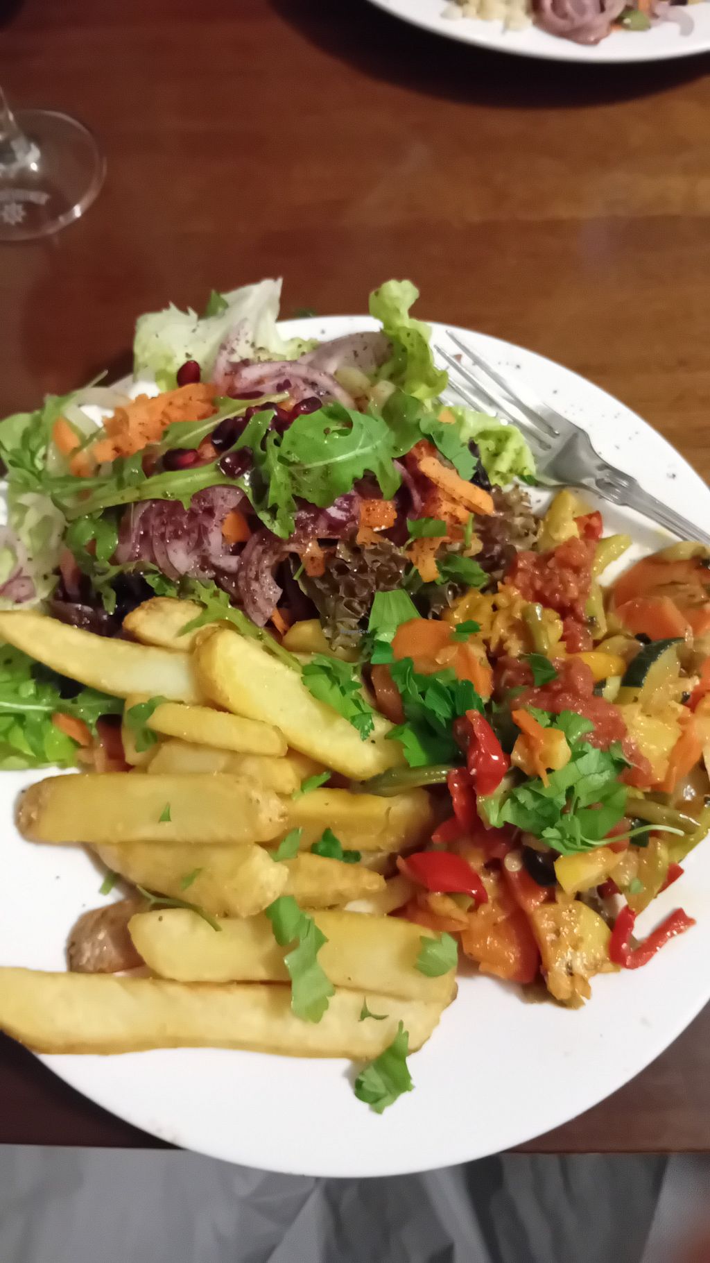 Die mediterrane Grillgemüseplatte mit Pommes war lecker. Dafür die mögliche Höchstpunktzahl.