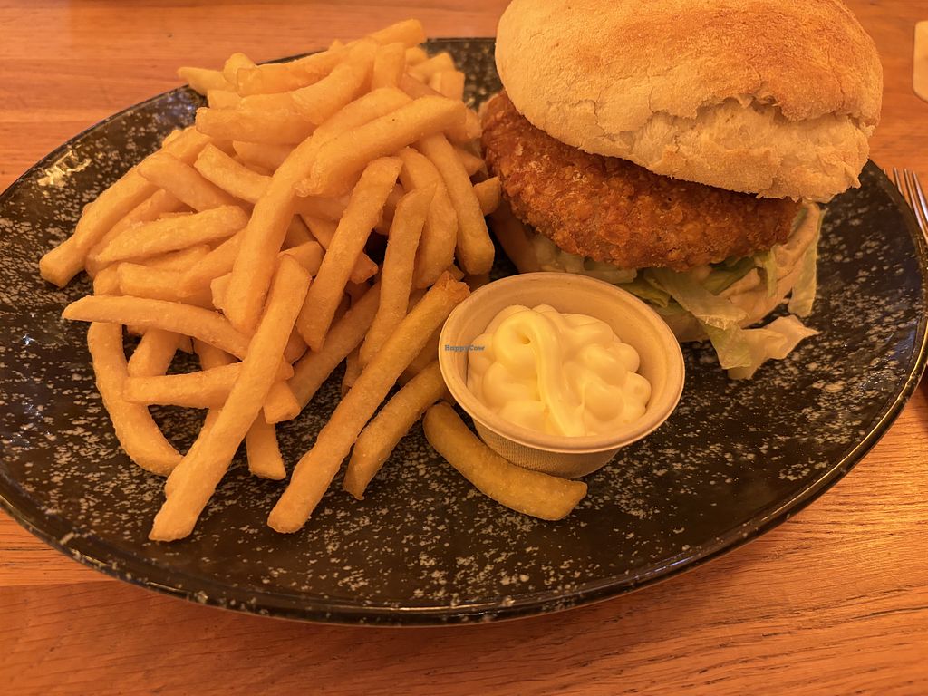 Several vegetarian options. For vegans a nice vegan burger with fries. I took it with a nice vegan side salad.