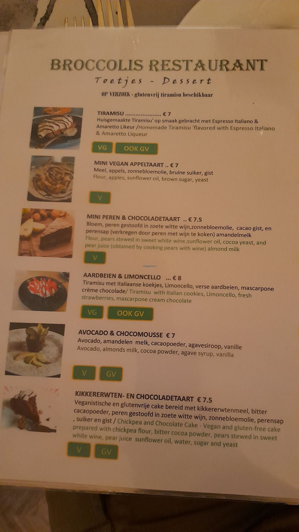 Super gegeten bij Broccolis. Bij ontvangst wordt er door de vriendelijke eigenaar meteen een karaf met water en fruit op tafel gezet. Al het eten is heerlijk, de gevulde aubergine en chocolade-peren taart zijn favoriet!