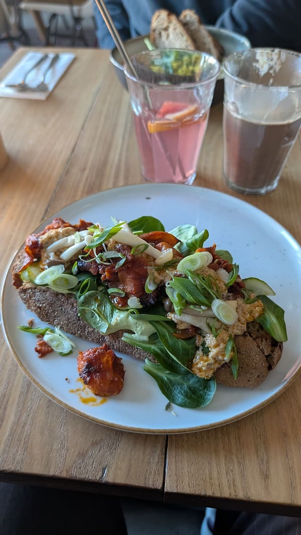 We tried the 'wortelzalm' and 'carbonara ' sandwich. Both were so tasty. Some delicious high quality bread and great toppings. Both were good but the carbonara one was excellent. It was cheesy in a way I haven't tasted yet since becoming vegan. The restaurant has a nice location along the water. Our friends tried the pastrami and kroketten breads, they liked them as well! Only wish the portions were a tad bigger. Probably would not be enough if you are really hungry. Nevertheless, we'll be back!