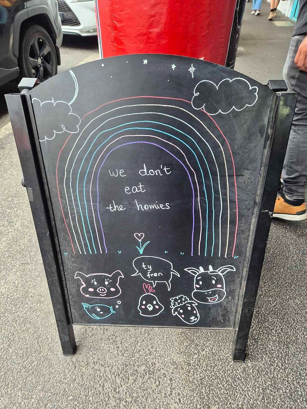 Licensed cafe and restaurant serving vegan food, hot and cold drinks, and desserts. Dishes include stir fries, rice dishes, noodles, burgers, soups, salads, bao and dumplings, as well as sweets, including several flavours of gelato. Beer, wine and cocktails available. Business operates on solar power. Open Tue-Sat 5:30pm-9:30pm, Sat-Sun 11:30am-3:30pm, Sun 5:30pm-9:00pm. Kitchen stops 30 mins before closing. Closed all Public Holidays.