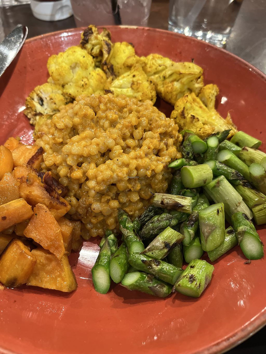 The vibe is cozy casual, and the menu has many vegan options, including a dedicated “Vegan Bowl” section with 4 different bowl options. I enjoyed the Vegan Pasta entree one night - while basic, it was also very good; and the Red Curry Couscous Bowl for lunch a different day, which was perfectly seasoned and cooked. Great spot to go with omnis, plus affordable!