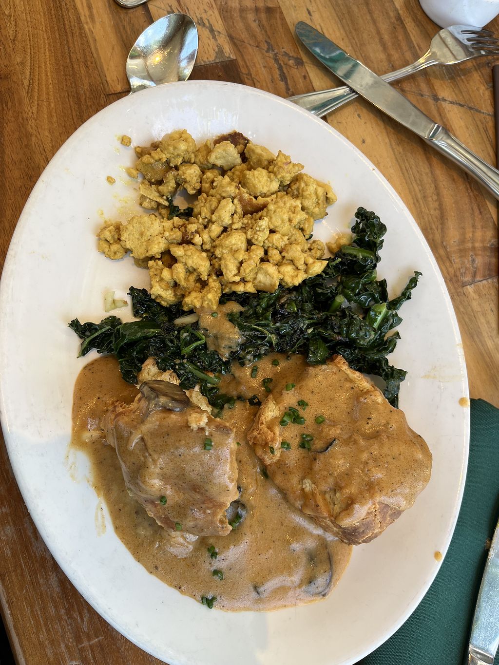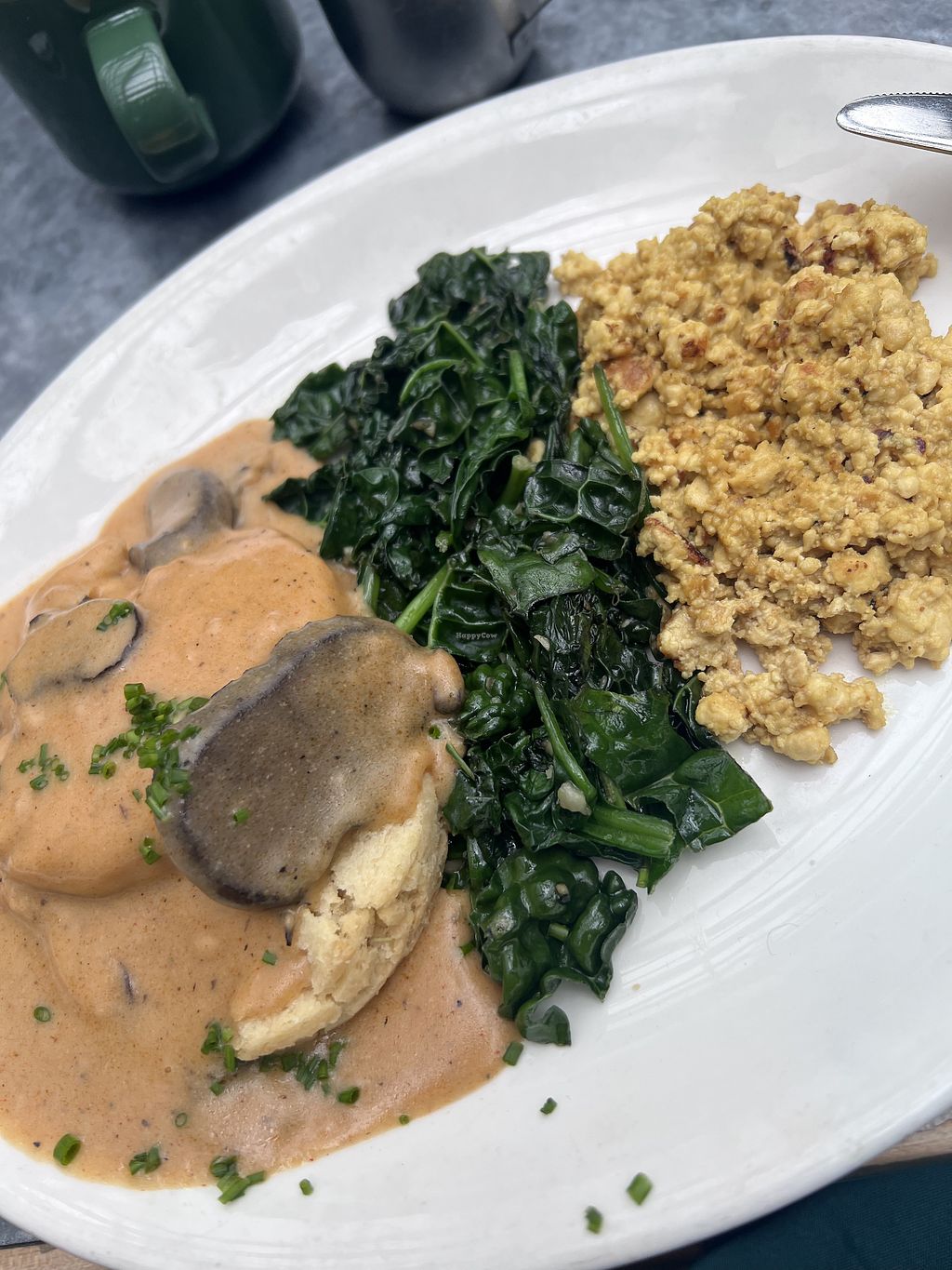 Tried biscuits and gravy for the first time, but hopefully not the last! Also great scrambled tofu. Good coffee.