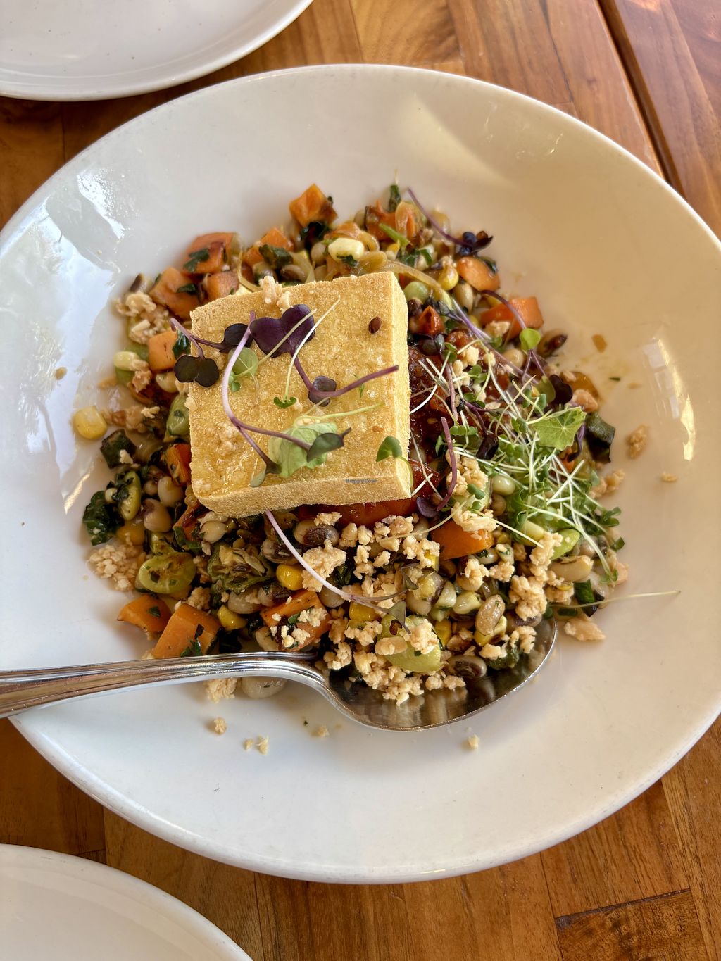 We went twice, once for brunch and once for dinner. Both were excellent, but brunch was particularly delicious, especially the Southern something -or-other (I forgot to take pics this time), which was a tofu scramble, vegan biscuit/gravy, and greens. The turmeric drink was also really tasty. Excellent!