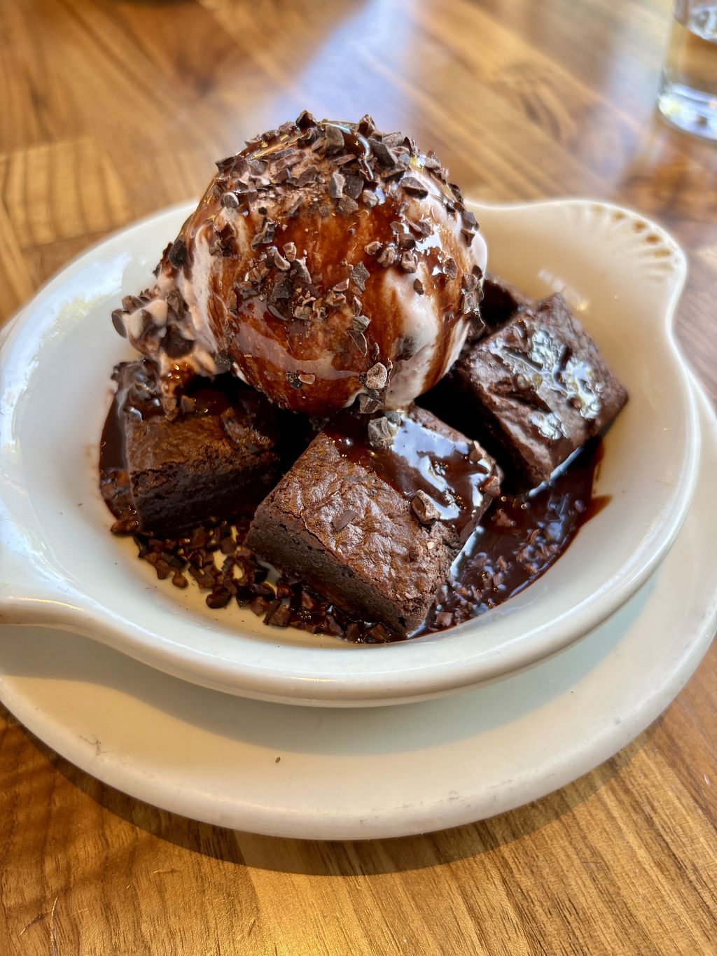 The flavors were amazing. You can tell they put a lot of thought into everything. The tea has great, complicated notes. The mushroom gravy left me wanting to drink it. The tofu scramble had flavor, and was great with the hot sauce they brought me. The raspberry brownie sundae came out super warm, and it just really wonderful.