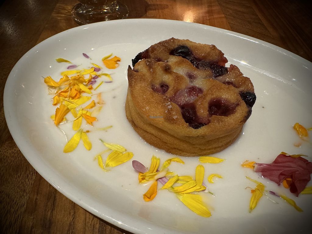 Initially a little saddened that the black bean kimchi burger wasn’t on the dinner menu, the presentation and flavors of the crispy chickpea panisse dish (listed under the “substantial” menu section) more than made up for it….and “no regerts” with my impulsive decision to order the cranberry almond clafoutis for dessert.