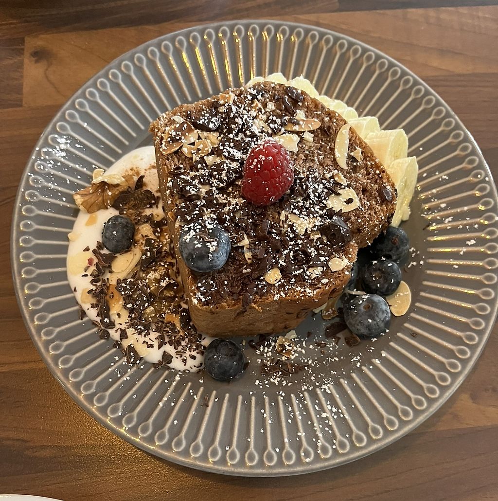 I walked by the café and it looked so nice I had to have a drink. I was surprised to find so many vegan options. I went for the banana bread breakfast that was really good and nicely arranged.