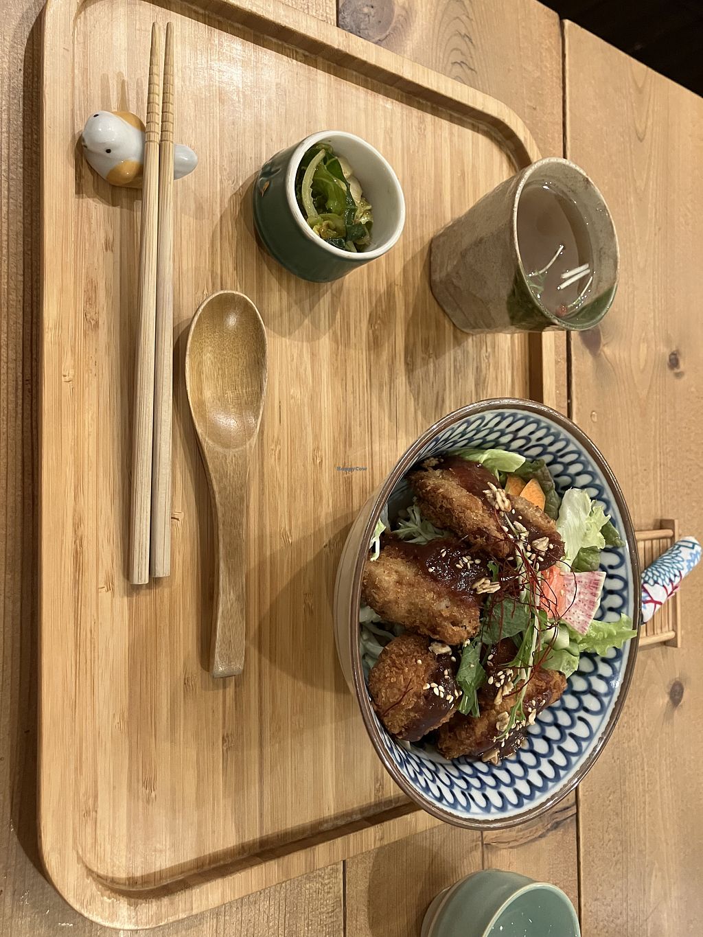 I really enjoyed my dinner at Cafe Ren. It was packed with locals and we almost didn't get a seat, so I recommend making a reservation. I highly recommend the daily set meal, the soymeat cutlet meal and the spring rolls. They were delicious and packed with flavor.