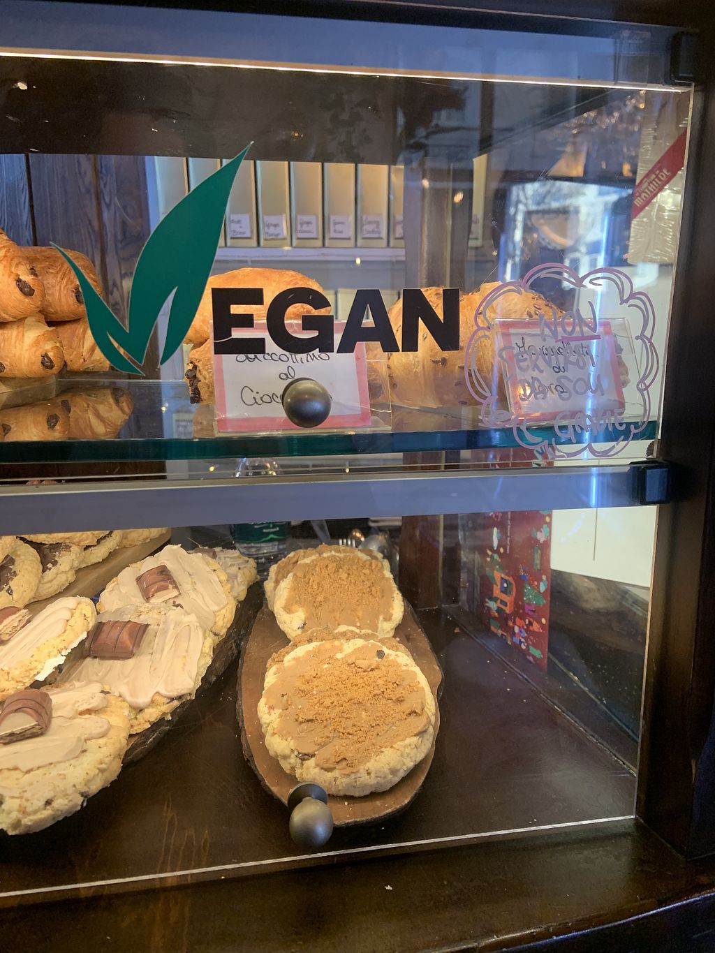 Some vegan options clearly labeled such as filled croissants. Oat milk for drinks. The place is cute and the staff is nice