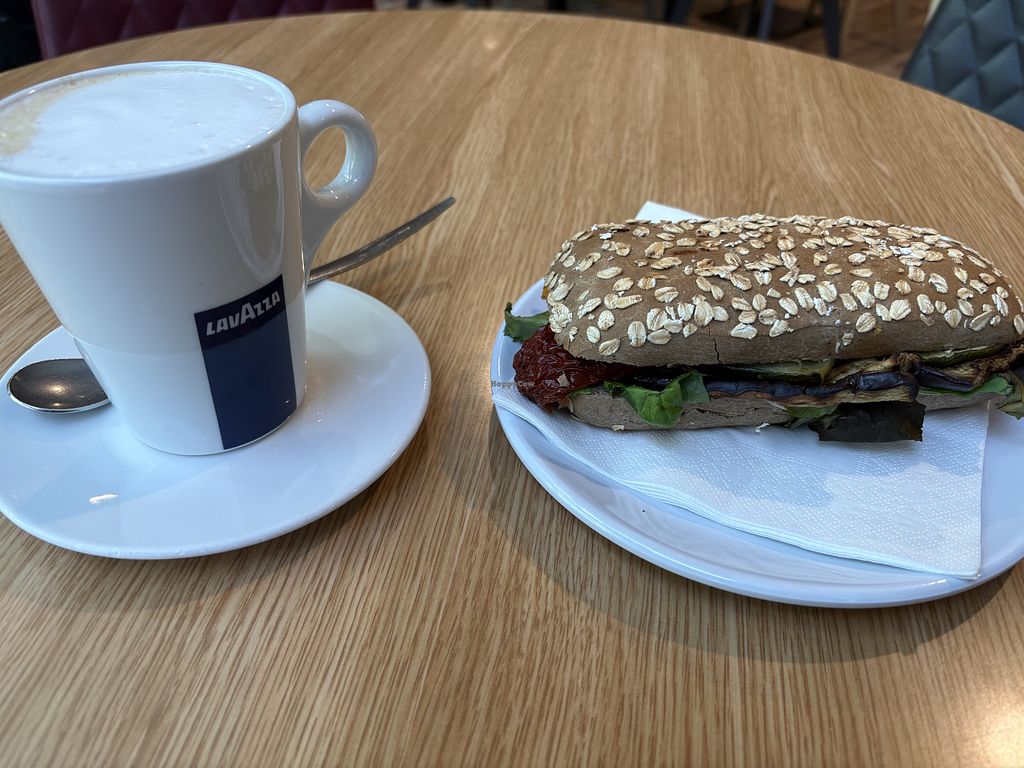 Lacto Italian Fast food Juice bar Beer/Wine Take-out Bakery Gluten-free Breakfast Non-veg Serves meat, vegan options available. Airport coffee shop offering a vegan panini, apricot jam croissant and carrot cake. Open Mon-Sun 08:00-00:00. More
