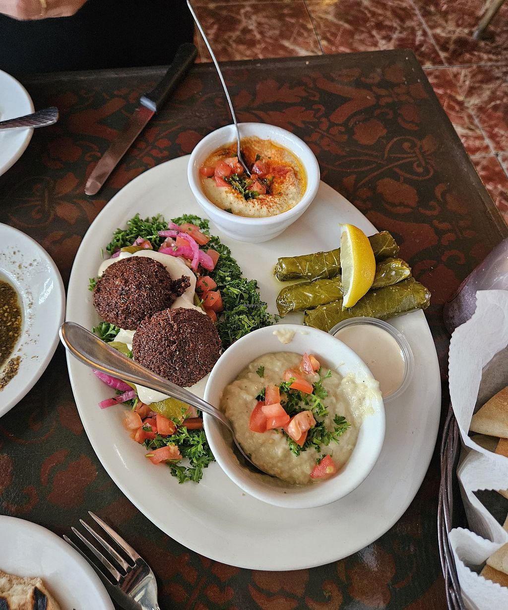 Excellent Lebanese restaurant! I had the mazza plate (hummus, baba ghanoush, falafel, dolmades—ask for tahini). For the main, I chose the moussaka—nothing like lasagna! This is the Lebanese version, not the Greek one, and it was fantastic. Special shout-out to the pita bread: forget what you know from the supermarket—this is on a whole different level.