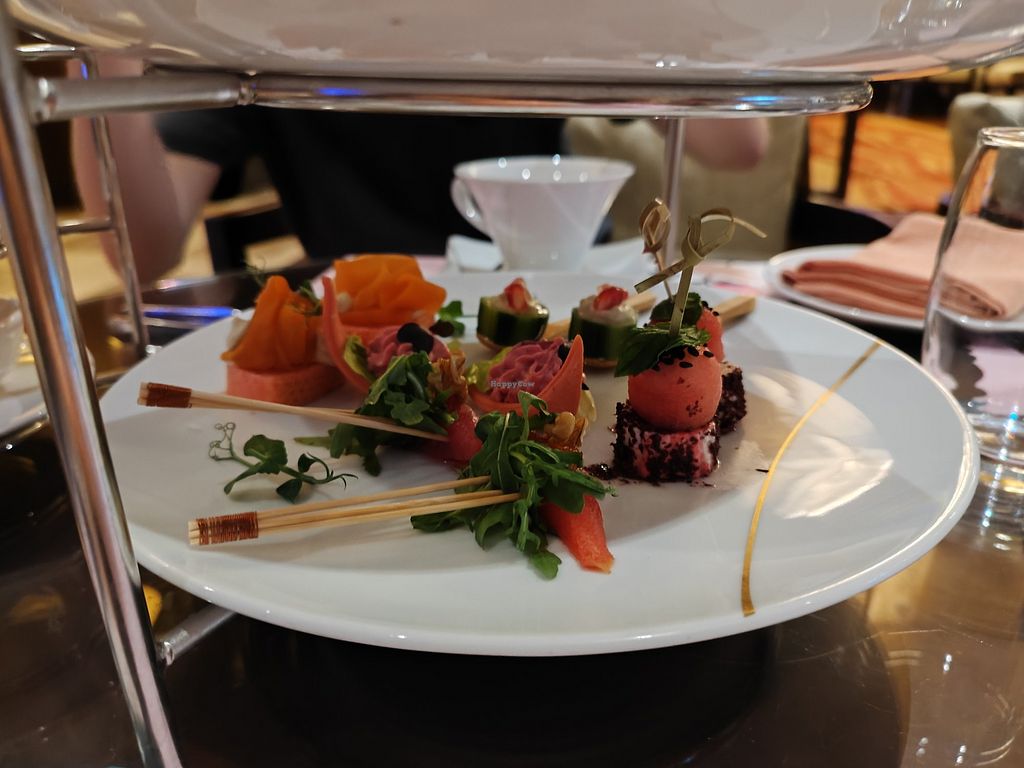 Lobby lounge café in Rotana, City Center, Doha, offering vegan options such as alternative milks, Impossible burger, and a vegan afternoon high tea menu with a variety of savory and sweet finger foods available upon request. Vegan diets can be accommodated if communicated in advance. Accessible through the main entrance or City Center Mall. Open Mon-Sun 7:00am-11:00pm.