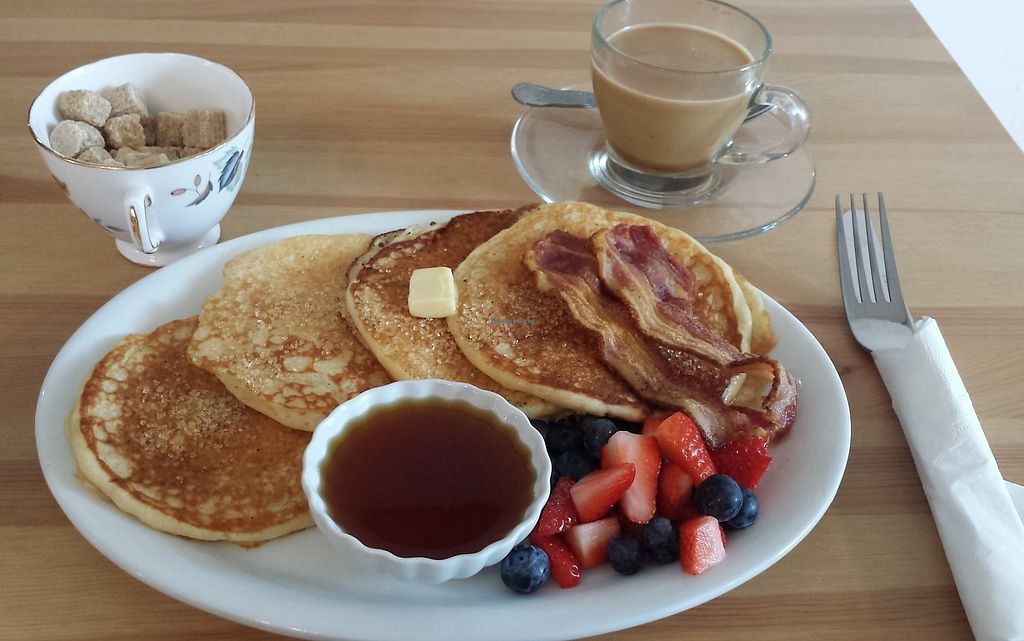 I would give this 100/5 stars. Best French toast ever!!!!! So friendly. Has dogs. The bacon tasted so real I got nervous even after she reassured me it was vegan. Coffee breakfast milkshake amazing. Wish so much I could come back here 😭 one of the best breakfasts I’ve ever had in my life.