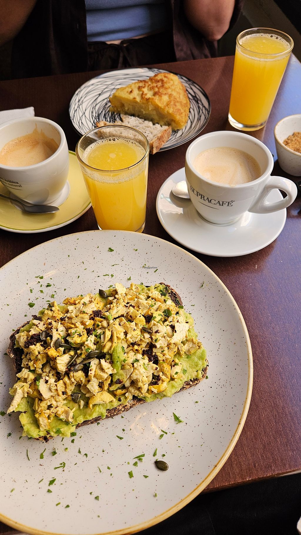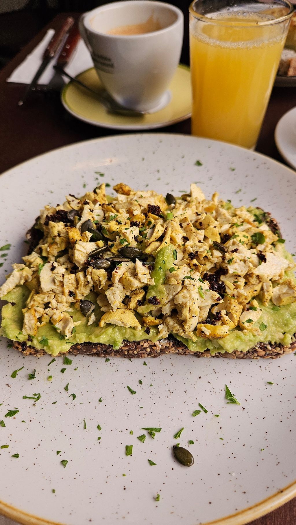 Lots of vegan options. I had a great avocado-tofu-toast and an amazing cappuccino! Friendly staff and nice atmosphere. Not many tourists in the area!