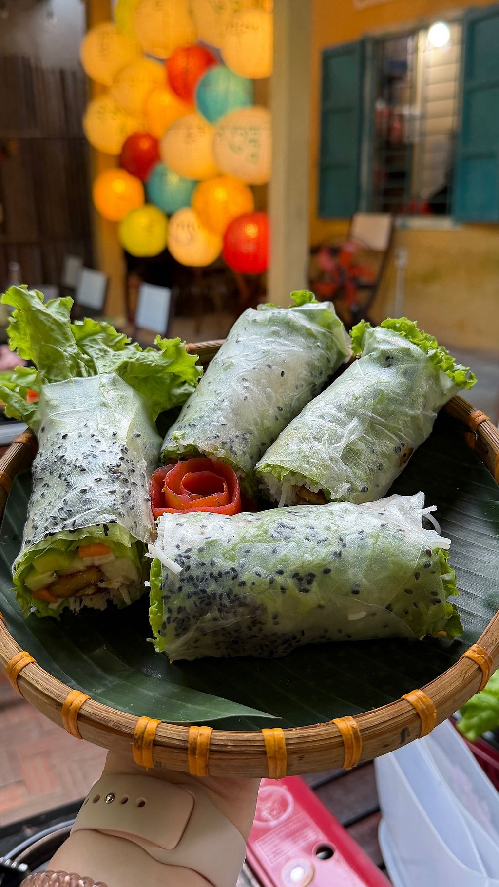 This ended up being the best food we had in Hoi An. The restaurant is tucked away in a quiet alley at the end of the street, which made it feel like a great little find. We started with the pineapple juice, which tasted incredibly fresh, and the taro spring rolls — crispy, flavorful, and a perfect way to start the meal.