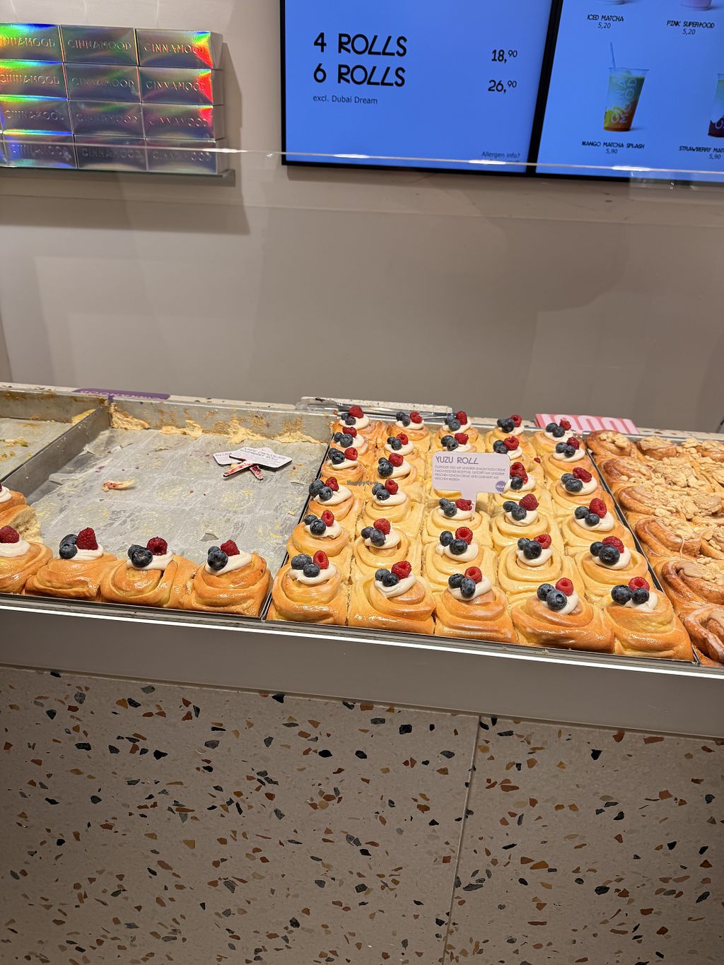 Read morePros: Base cinnaroll vegan - no risk of them running out, Lots of toppings, Oat milk available for coffees