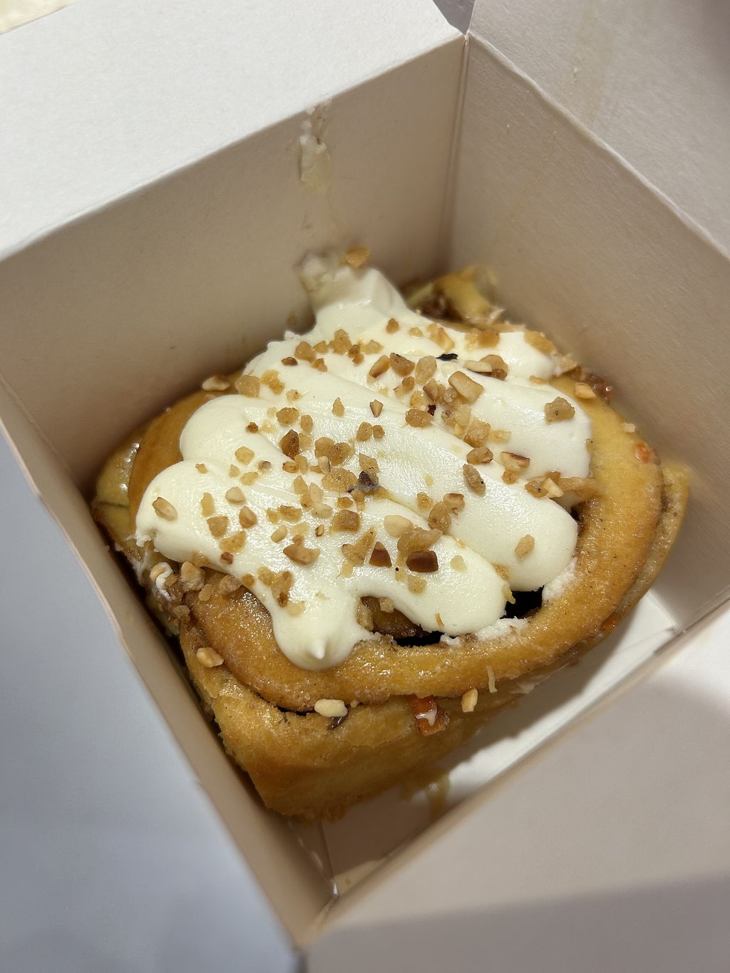 I loved the toppings, but the actual cinnamon roll was just alright. I feel like it’s basically just the vessel, like a cracker. Could be thinner and more out of the way haha I didn’t care much for it, but it was still good.