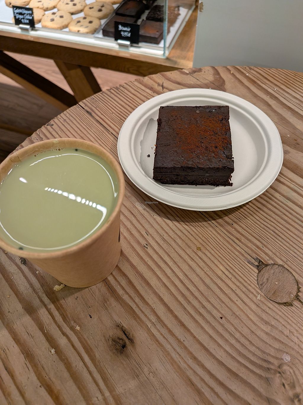 The shop has a very warm and cozy vibe. They have a variety of desserts which are vegan. They also serve coffee.