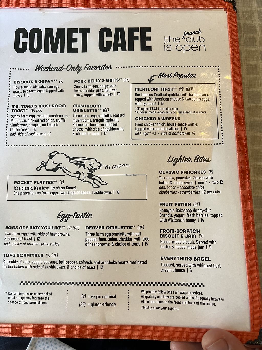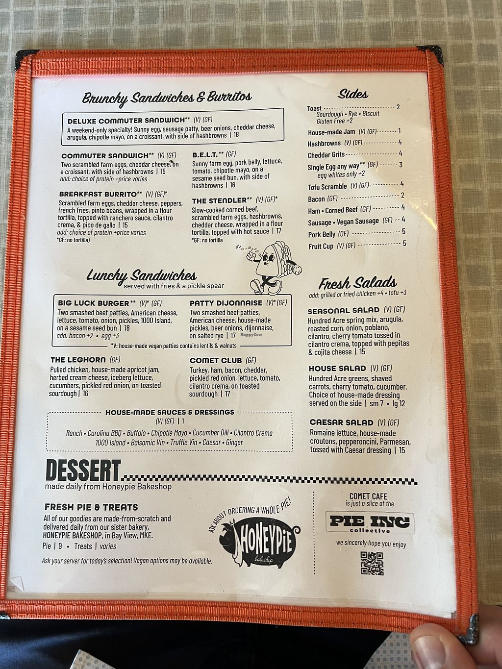 There's no shortage of vegan options on the menu, and each item is sure to bring comfort with its classic diner style offerings. And it's not super easy to find a vegan bloody mary in MKE, but Comet provides! They also more recently started carrying Honeypie Bakery items ... wow 10/10
