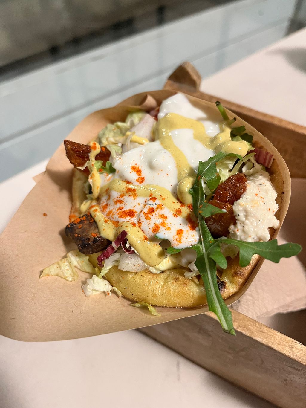 The flavours were really good. The potatoes were crispy on the outside and soft of the inside. The lentil was really nicely spiced in the lentil "kebab". Unfortunately, the place is in a not so pretty neighborhood and isn't so clean. It's very small so you can only sit outside where people might approach you. Otherwise, I'd happily recommend their food!